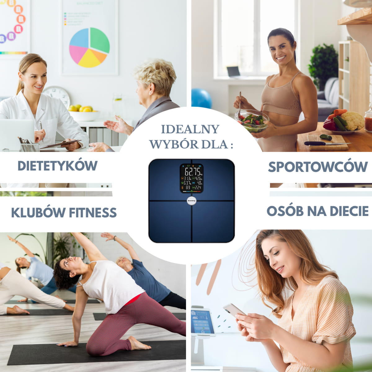 Ta waga pokazuje znacznie więcej niż standardowe urządzenia. Oprócz masy ciała analizuje m.in. zawartość tłuszczu, masę mięśniową, nawodnienie, BMI, wiek metaboliczny czy body score. Dzięki aplikacji możesz monitorować swój progres dzień po dniu, porównywać zmiany i lepiej rozumieć reakcję organizmu na dietę oraz trening. Obsługa wielu użytkowników sprawia, że z urządzenia korzysta komfortowo cała rodzina. Solidna konstrukcja, szklana platforma i atrakcyjny design dopełniają całość.