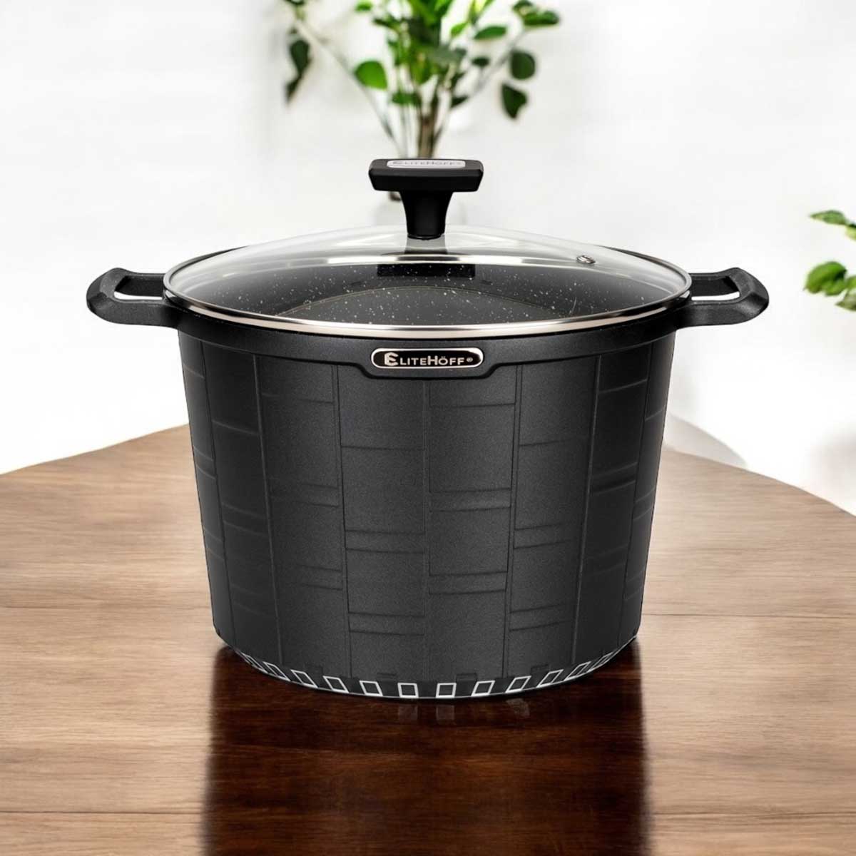 Ten granitowy garnek ze szklaną pokrywą o pojemności 6,5 L sprawdzi się podczas przygotowywania różnorodnych dań, zwłaszcza tych wymagających dłuższego gotowania lub duszenia. Może być także używany do pieczenia w piekarniku co zwiększa jego funkcjonalność w kuchni.