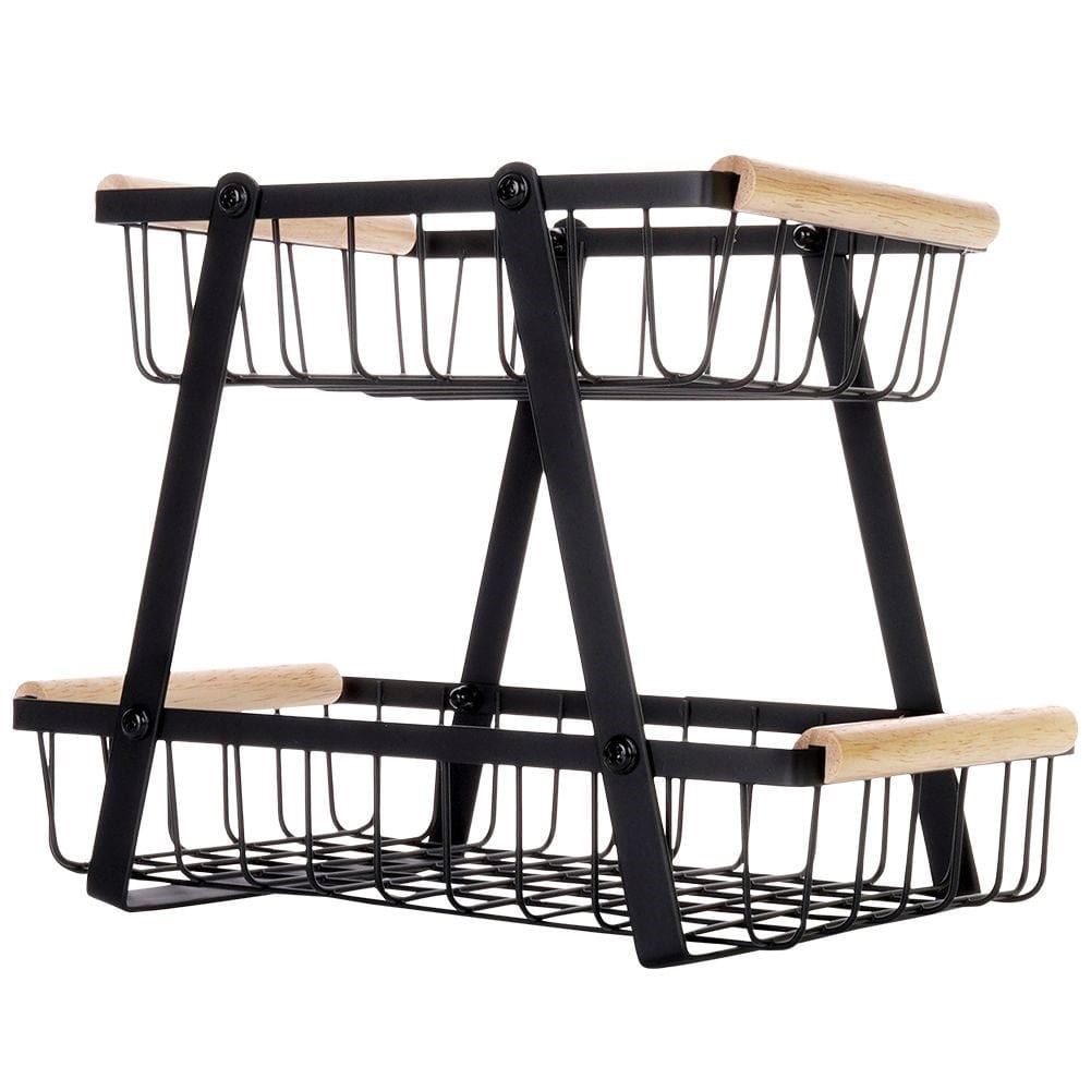 - DO PRZECHOWYWANIA - Dwupoziomowy koszyk do przechowywania warzyw i owoców. Koszyk o wymiarach całkowitych: 28 x 17,5 x 21 cm. Doskonale sprawdzi się postawiony na blacie lub szafce. Składa się z dwóch koszyków w różnych rozmiarach. Koszyk dolny ma wymiary: 28 x 17 x 6 cm, a koszyk górny: 21,5 x 17 x 6 cm.
