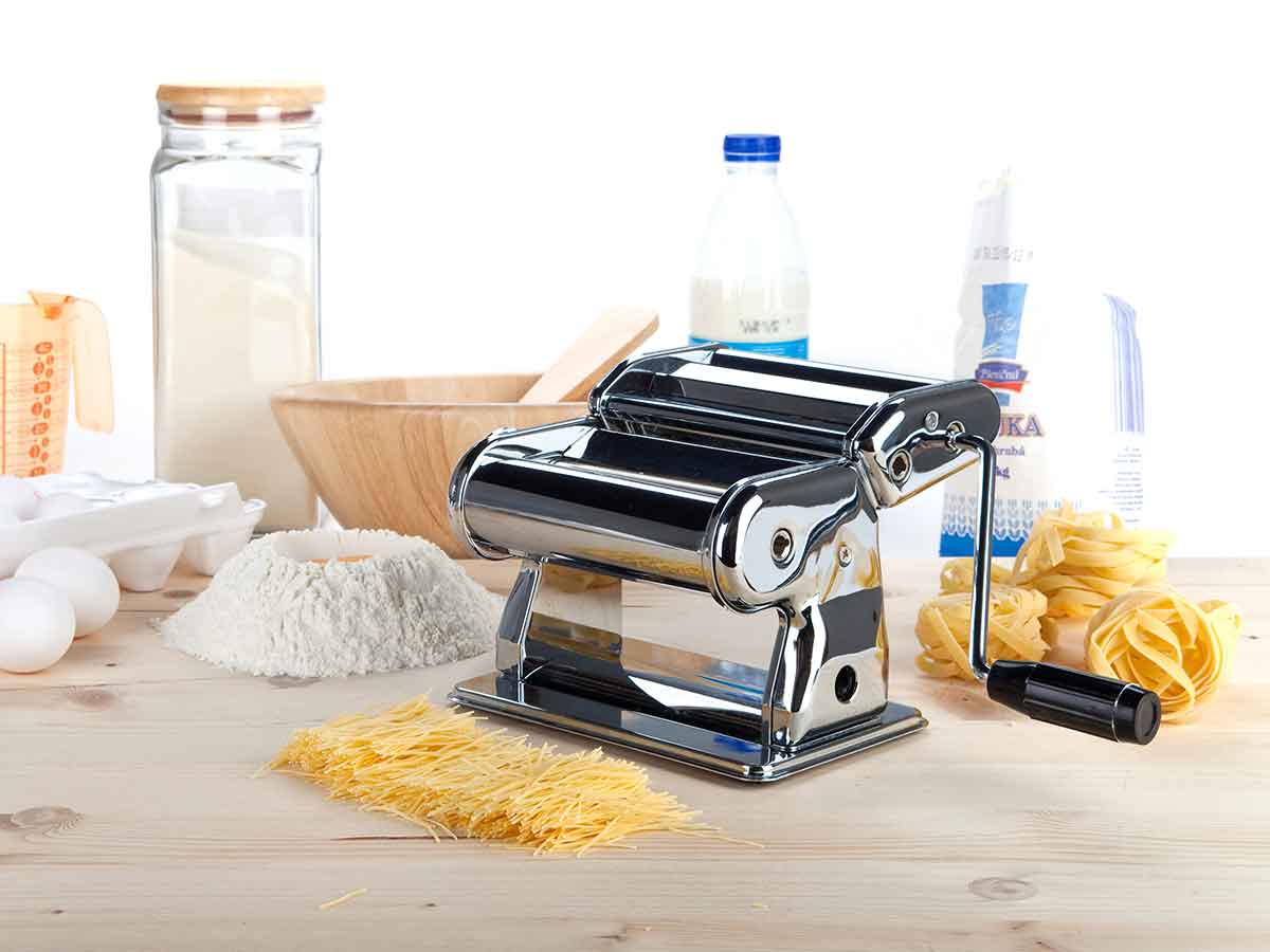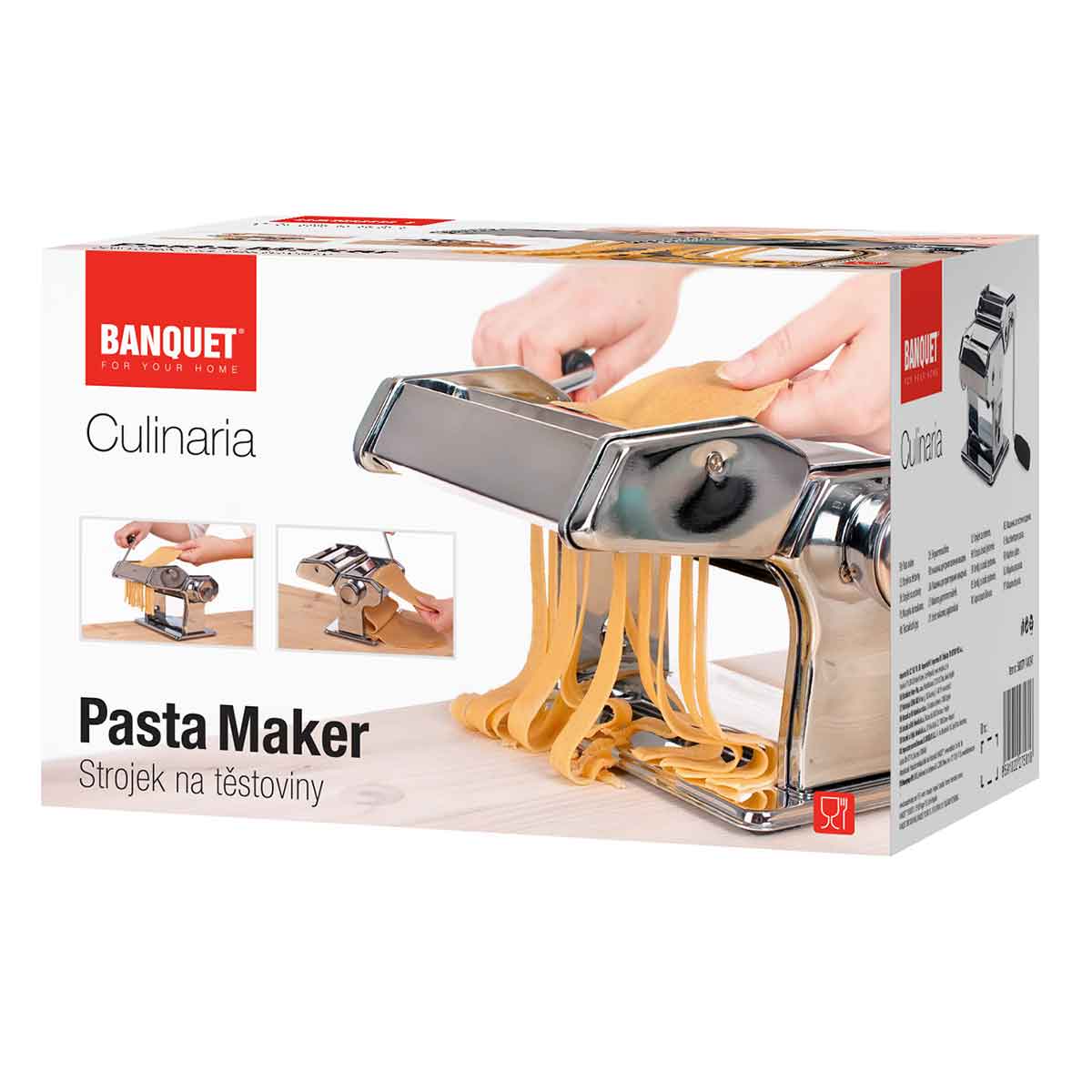 Maszynka do makaronu Banquet Culinaria służy do szybkiego i wygodnego przygotowywania domowego makaronu oraz rozwałkowywania ciasta na pożądaną grubość. To praktyczne urządzenie sprawdzi się idealnie w każdej kuchni, umożliwiając przygotowanie świeżego makaronu, ciasta na lasagne czy pierogi.