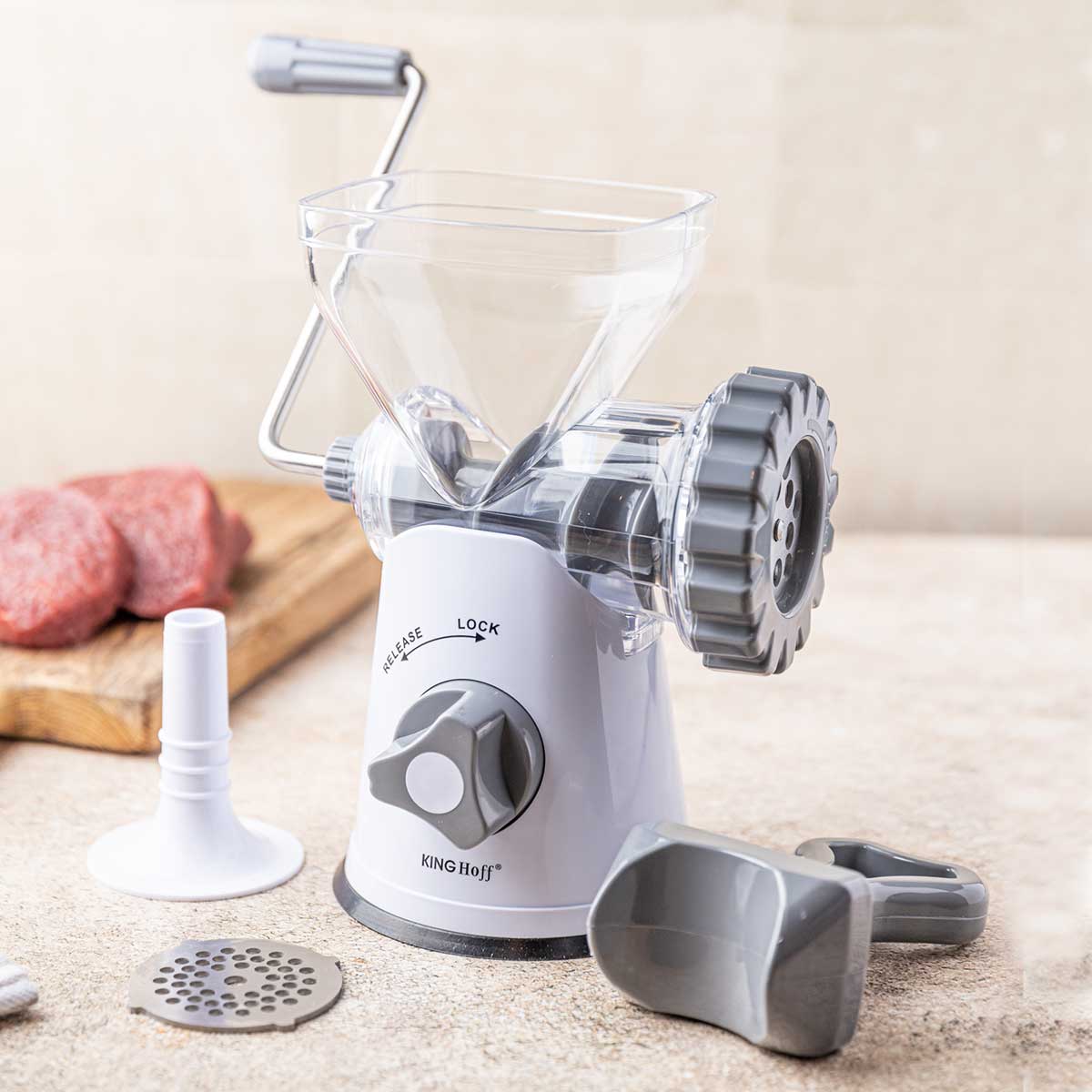 Wznieś swoje kulinarne umiejętności na wyższy poziom dzięki wszechstronnej maszynce do mielenia mięsa od marki KINGHOFF. To solidne i praktyczne urządzenie, które sprawdzi się w codziennym użytku domowym. Zaprojektowane z myślą o trwałości, bezpieczeństwie i wygodzie, pozwala na efektywne mielenie mięsa, warzyw oraz orzechów, umożliwiając tworzenie różnorodnych potraw.