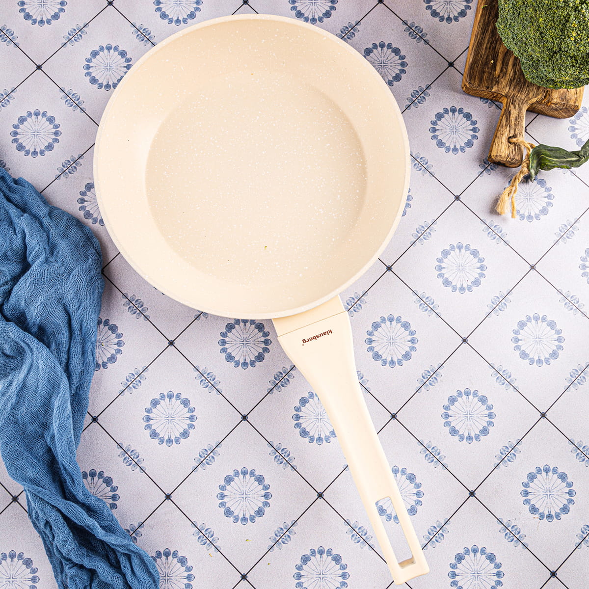 Klausberg KB-7989 to elegancka, kremowa patelnia o średnicy 24 cm, idealna do przygotowywania codziennych potraw — od mięsa i ryb, po warzywa, jajka i naleśniki. Marmurowa powłoka non-stick gwarantuje komfortowe smażenie bez przywierania oraz możliwość ograniczenia ilości tłuszczu. Jasny kolor z delikatnym wzorem sprawia, że patelnia świetnie komponuje się z nowoczesnymi, jasnymi kuchniami. To naczynie, które sprawdzi się zarówno w domu, jak i w kuchniach, gdzie liczy się niezawodność sprzętu.