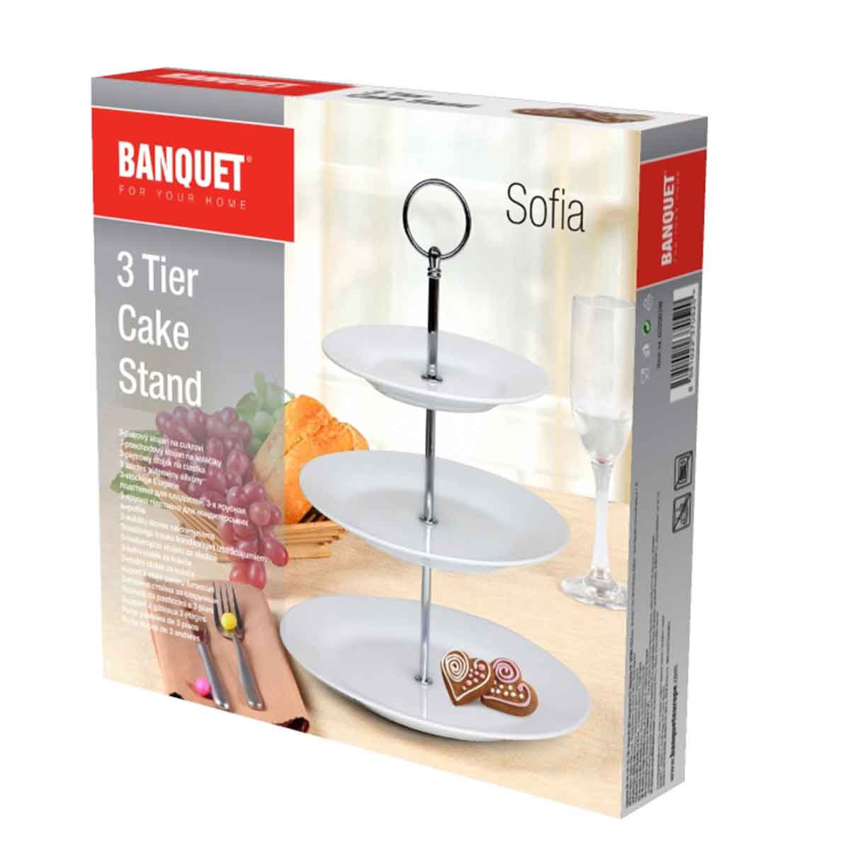 PORCELANOWA PATERA TRZYPIĘTROWA NA CIASTO PRZEKĄSKI BANQUET SOFIA