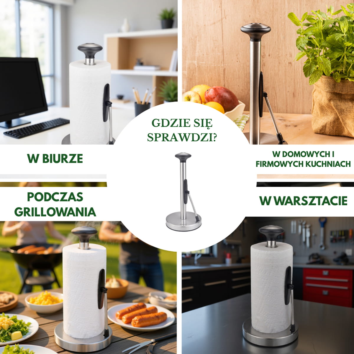 Ten stojak to idealne rozwiązanie dla każdego, kto ceni porządek i wygodę. Niezależnie od tego, czy używasz go w kuchni domowej, biurze czy na zewnątrz – zawsze masz ręcznik pod ręką, bez bałaganu i rozwijającej się rolki.