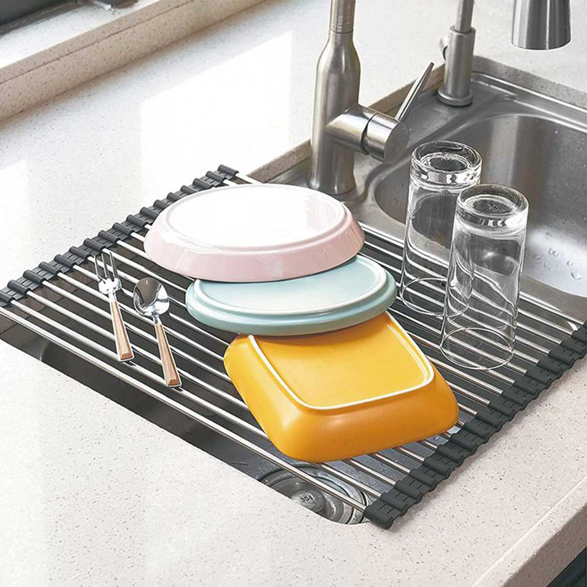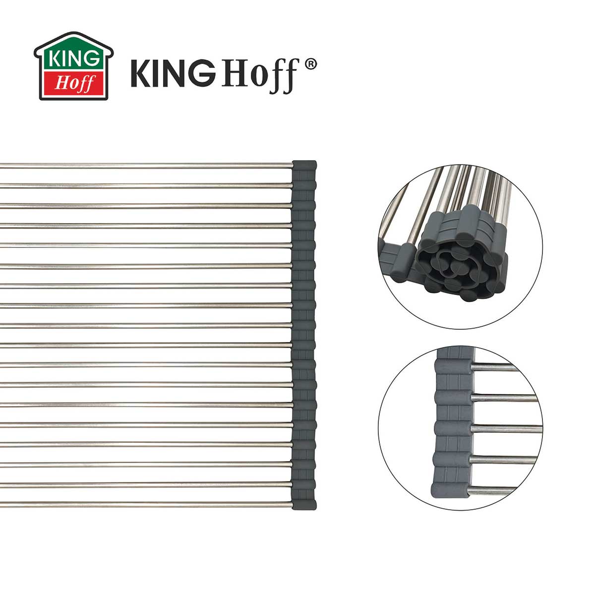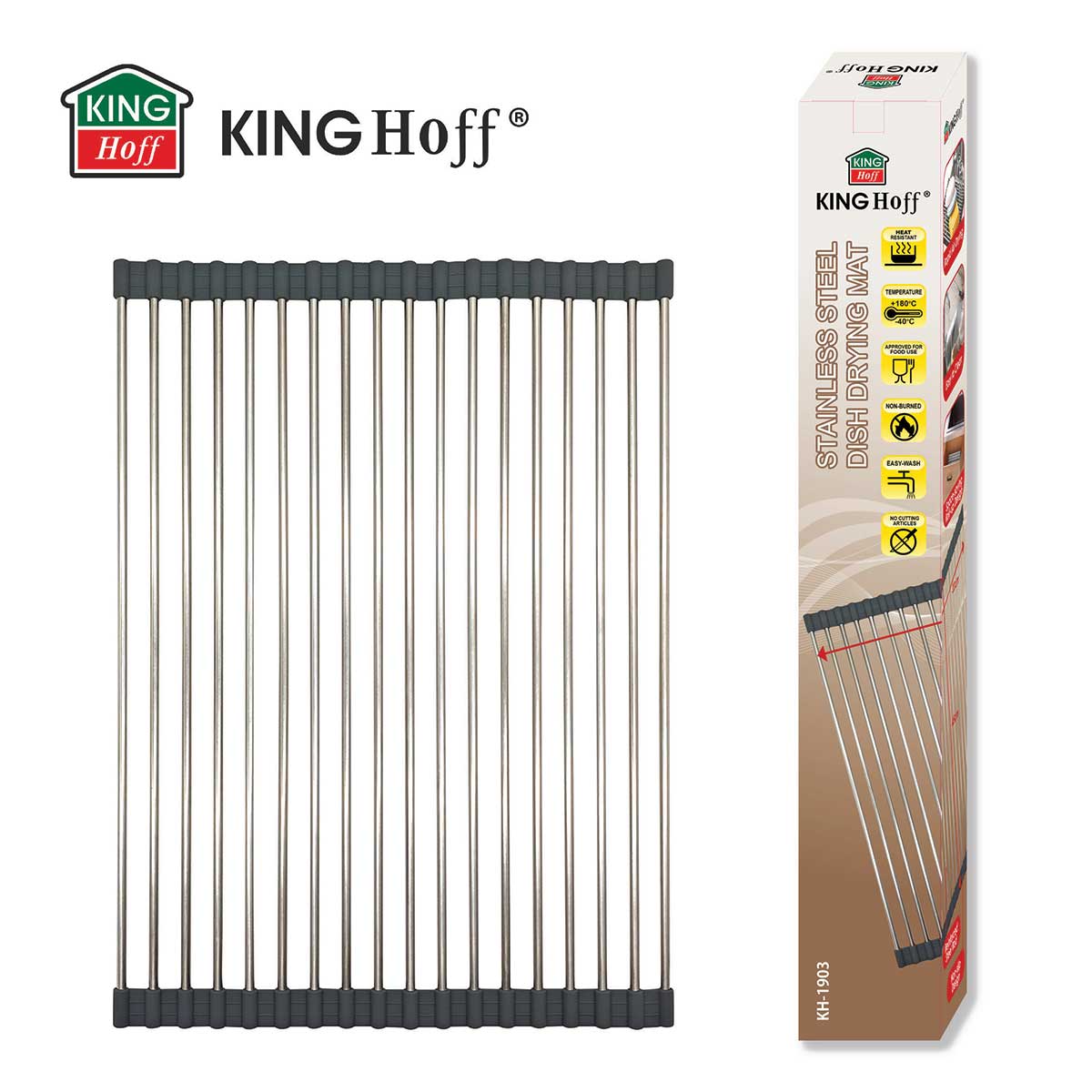 Mata do suszenia naczyń ze stali nierdzewnej z silikonowym wykończeniem KINGHoff KH-1903 – 45 x 32 cm | Nowoczesne suszenie bez zajmowania miejsca