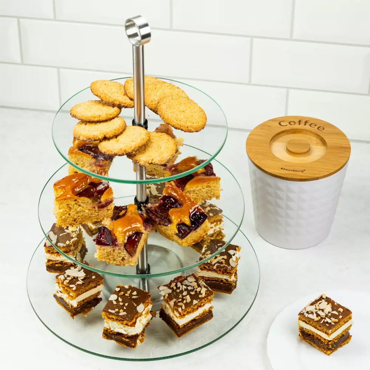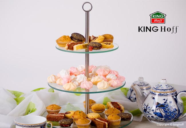 SZKLANA PATERA KINGHOFF 3-POZIOMOWA NA OWOCE CIASTA KH-4016