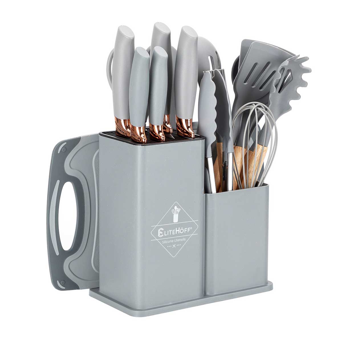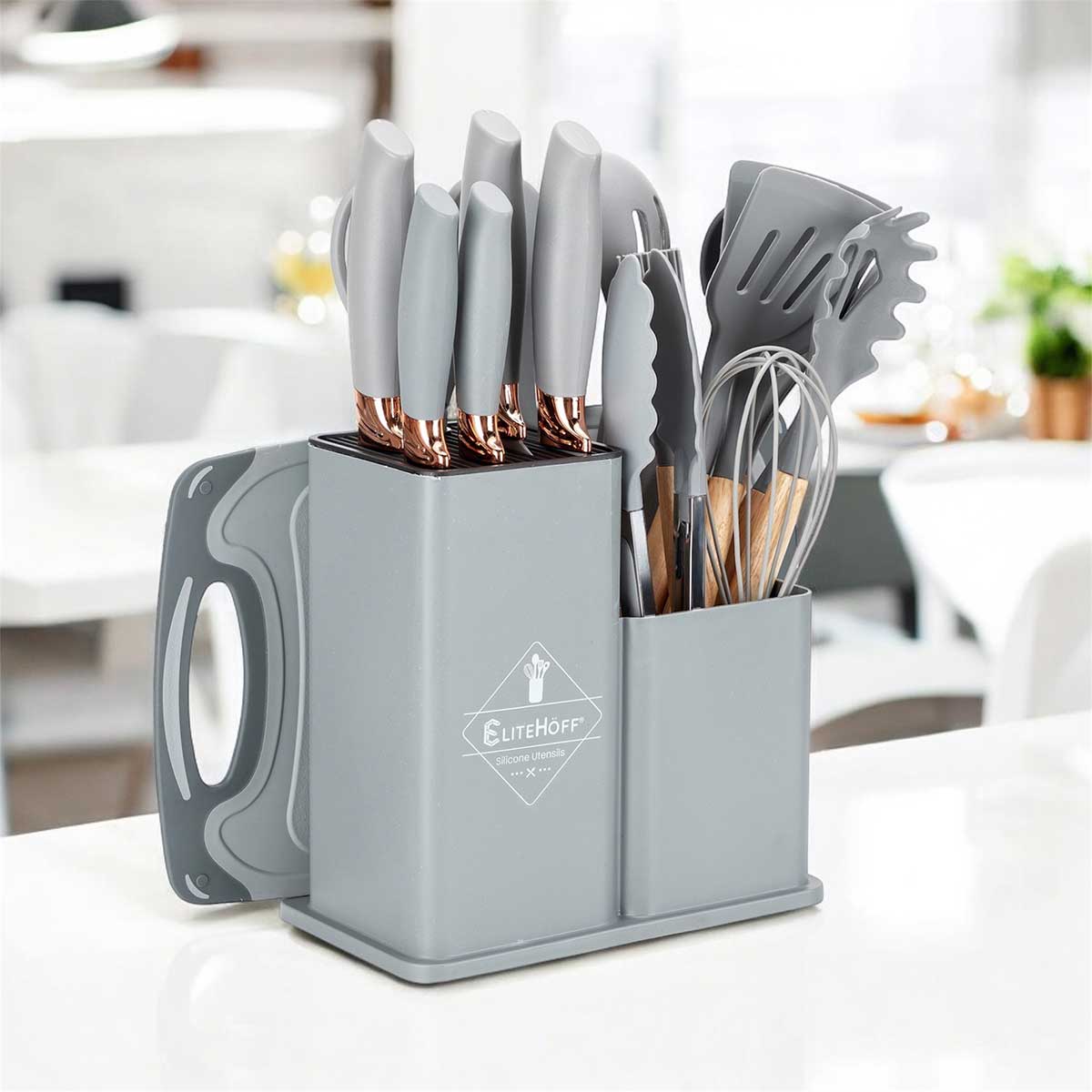 ZESTAW 19 ELEM. NOŻY I PRZYBORÓW KUCHENNYCH W STOJAKU E-6070