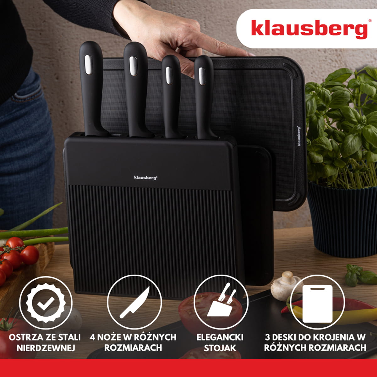 ZESTAW NOŻY I DESEK KUCHENNYCH W STOJAKU KLAUSBERG KB-7980