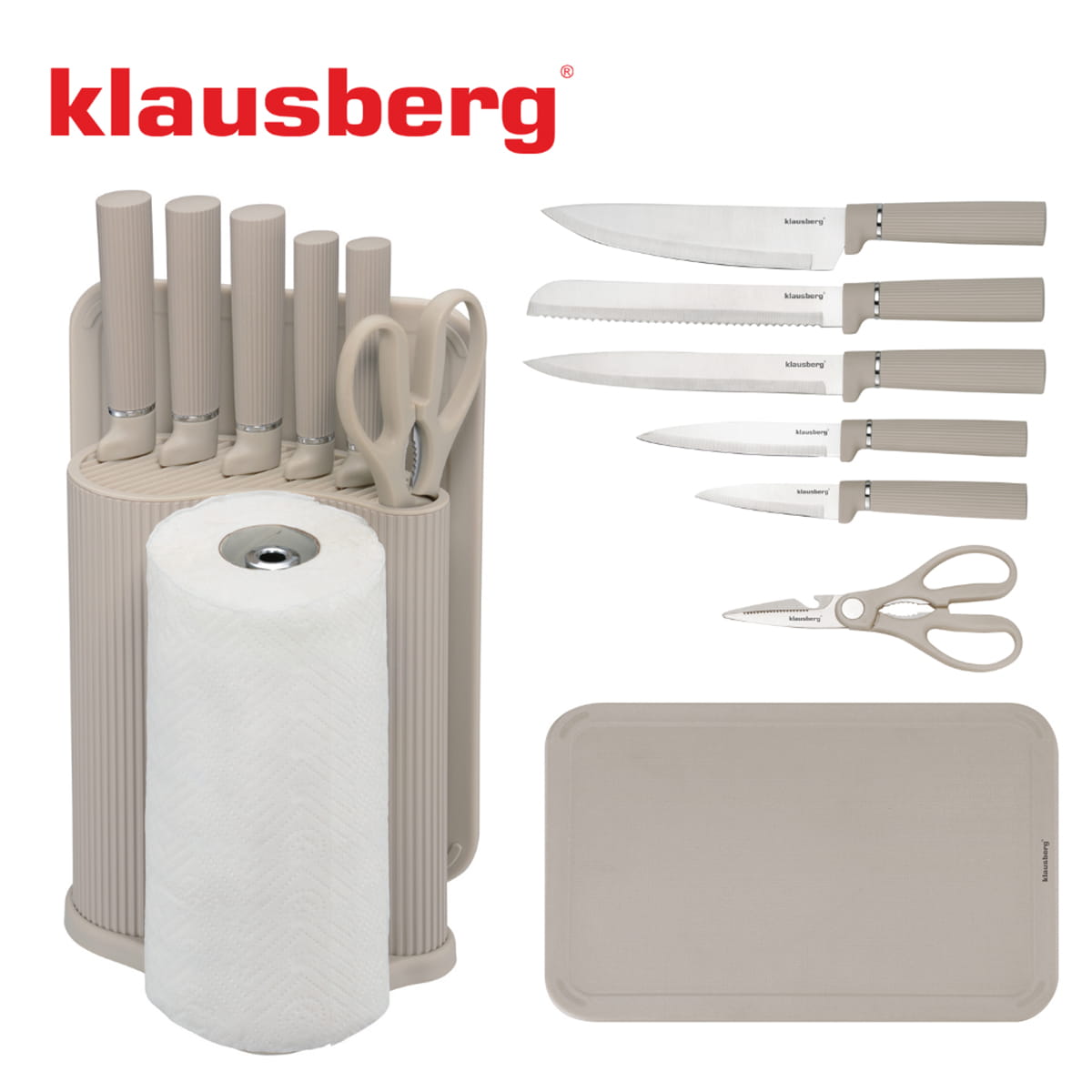 ZESTAW NOŻY W STOJAKU Z DESKĄ I CHWYTEM NA RĘCZNIK KLAUSBERG KB-7978